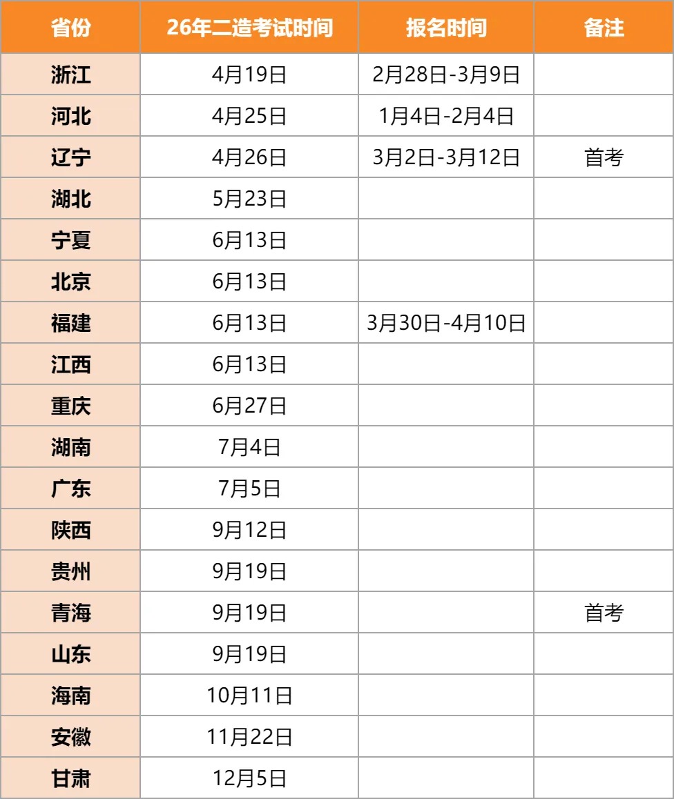 这就很有意思了,2026年的二造考场,大概率会出现一幅“双轨制”的画面:宁夏、北京、福建、江西(目前已知的“吃螃蟹”地区)的考生,在6月13日统一考试…