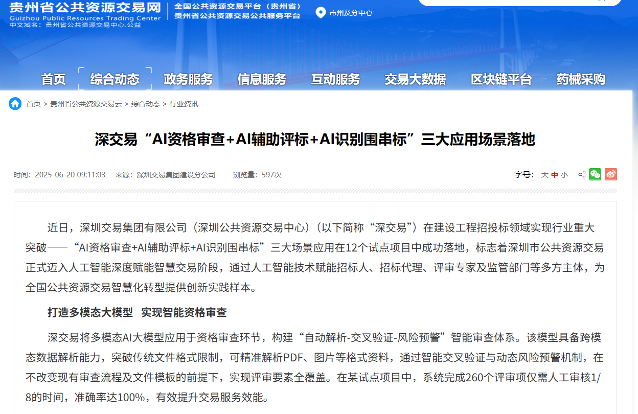 技术正在成为守护公平的“火眼金睛”。比如贵州省公共资源交易中心,已经试点应用了“AI辅助评标”和“AI识别围串标”系统。