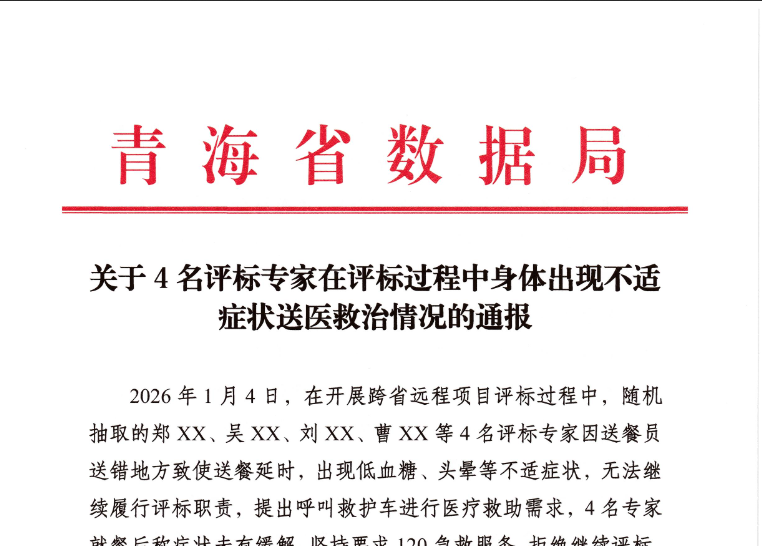就在这个月,一个跨省远程评标项目上,四位随机抽中的评标专家,因为送餐员送错了地方,吃饭晚了点,结果集体出现了“低血糖、头晕”等症状。更关键的是,吃完饭他们也没好转,坚持要叫120急救车,直接中断了评标工作。