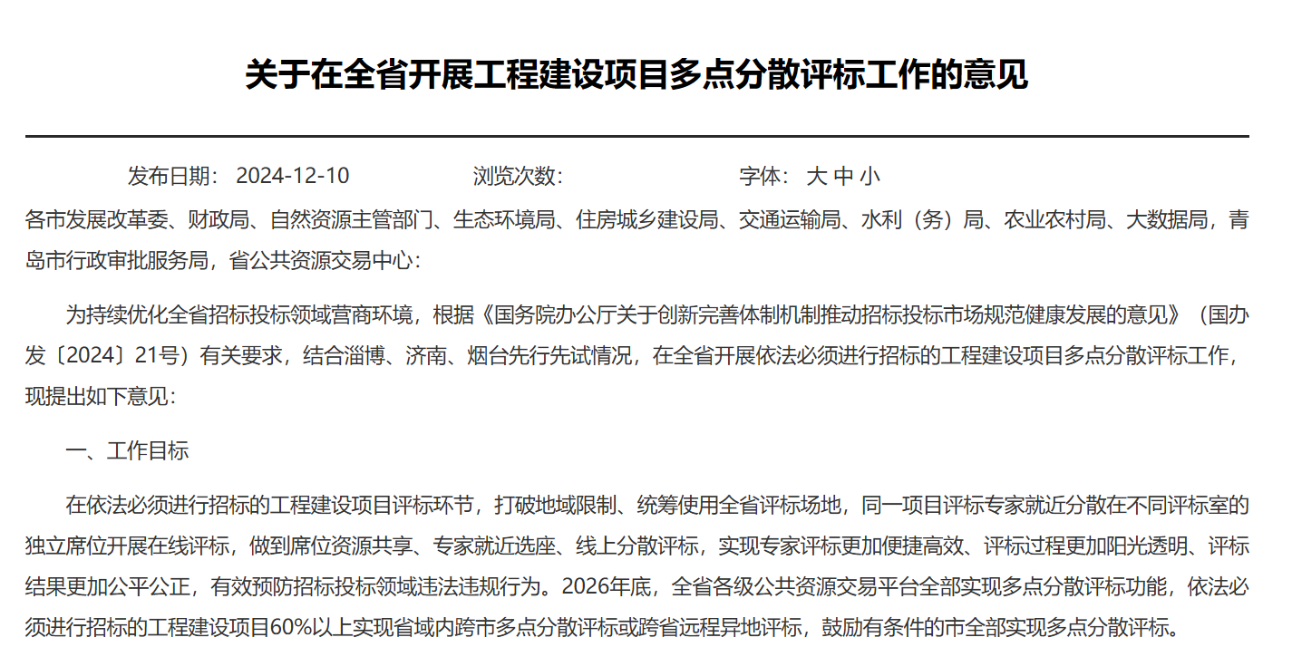 山东省正在全省推广,目标是到明年底,大部分项目都能实现专家在不同城市、甚至不同省份的评标室里,线上同步评审。