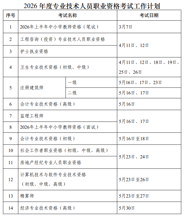 明确了2026年度专业技术人员职业资格考试工作计划。