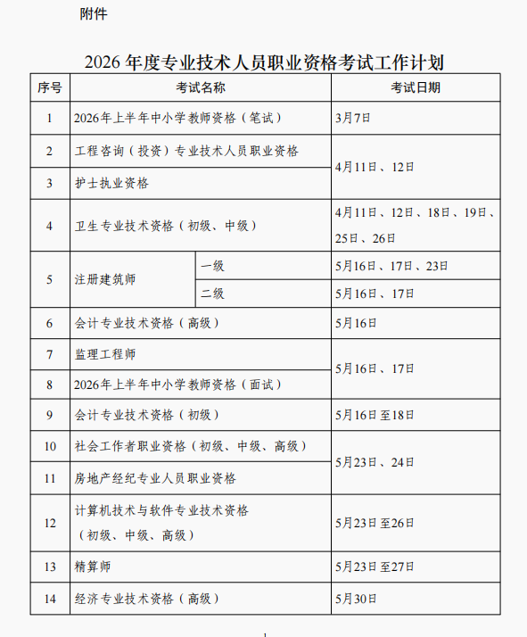 今天,人力资源社会保障部办公厅正式发布了“2026年度专业技术人员职业资格考试工作计划及有关事项的通知”。给马年的第一个月增添了些许躁动。